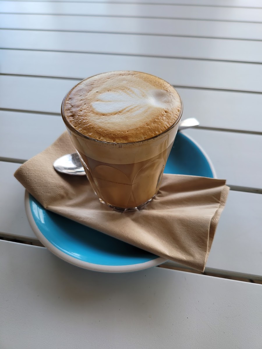 The cafe has an extensive menu with something for everyone. One of the standout dishes is their Beef Bratwurst, a flavorful sausage that pairs beautifully with a side of roasted pumpkin salad. The combination of savory flavors and fresh ingredients makes it a must-try. For those with a sweet tooth, the Hot Chocolate is a comforting choice, especially on cool mornings or afternoons. If you're in the mood for something a little more indulgent, the Long Macchiato Topped Up is a coffee lover's dream-rich, smooth, and perfectly balanced.